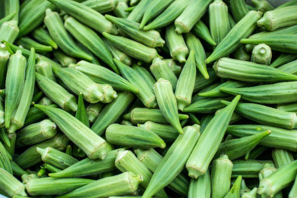 Gombo variété Clemson, cultivé durablement, livré frais et prêt à satisfaire les marchés européens à forte demande.